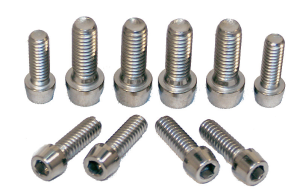 ANOTHER PLACE TO save weight. These all new Allen Head Titanium Bolts are perfect and feature Rolled Threads for long no stripping life. Plus the Heads are tapered for those close fitting places. Available For Standard Pans (18 Bolts) And For Aluminum Kick Out Styles (10 Bolts) As Shown.
