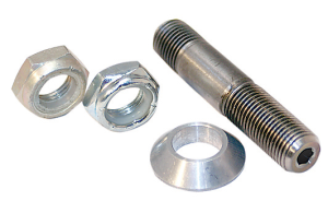 THIS IS A great way to save a lot of time on Drag Link and Steering Rod changes. A special Titanium Stud with Rolled Threads goes into your Steering Arm or Pitman Arm. It’s held tight with an Aluminum Nylock Jam Nut, also included is a 5/16” Aluminum Heim Spacer and Steel Half Nut. When you need to change the Links in a hurry just spin off the Steel Half Nut and slide on the new Link and tighten her up. We’ve Changed One In 25 Seconds!!