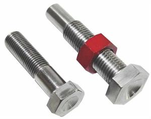 MANUFACTURED FROM 6AL-4V Certified Titanium and precisionally machined to perfection. The Threads are Precisely Cut and the Dimpled Head gives it an awesome look. The 7/16 Adjusting Bolt has a 5/8 Hex Head and the tip is machined down. The purpose of this is so when the tip of the bolt starts to wear or mushroom out it can easily be removed for maintenance.